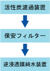 最後に、逆浸透膜(RO)純水装置を使用して原水を濾過し、純水にします。